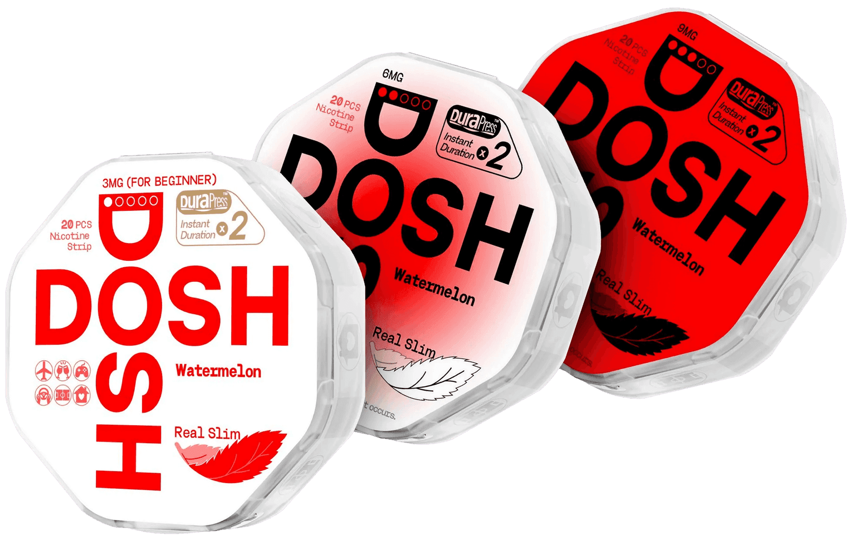 DOSH contains nicotine and is intended only for adults who already use nicotine. Do not use this product if you are under 18, pregnant or breastfeeding, allergic to nicotine, or advised to avoid nicotine for medical reasons, including heart conditions, severe hypertension, or diabetes. Stop using the product and seek medical advice if you experience symptoms such as an irregular heartbeat, allergic reactions (rash, itching, swelling), dizziness, nausea, headache, or any unusual effects. Keep DOSH products out of reach of children. DOSH GLOBAL LTD, a private company limited by shares registered in England and Wales, with its registered office at 124 City Road, London, United Kingdom, EC1V 2NX, operating under SIC code 47910.